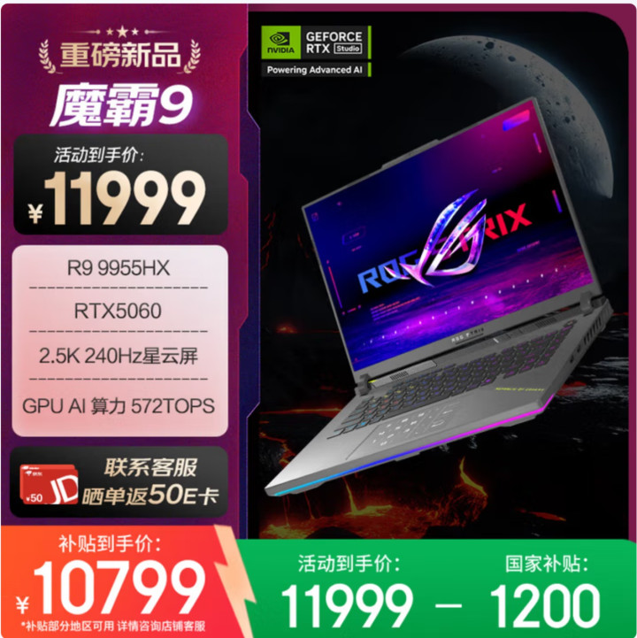 ROG 魔霸系列的目标用户,是对性能有硬性要求的群体:游戏主播、3D 渲染师、视频创作者。他们需要长时间满血运行。魔霸9 搭载AMD 锐龙 9 9955HX 处理器,采用创新的Zen5 架构,领先的4nm制程,拥有16大 核 32 线程 + 单核 5.4GHz的最高加速频率,80MB大容量高速缓存,支持PBO自动超频,多核性能已对标桌面旗舰。